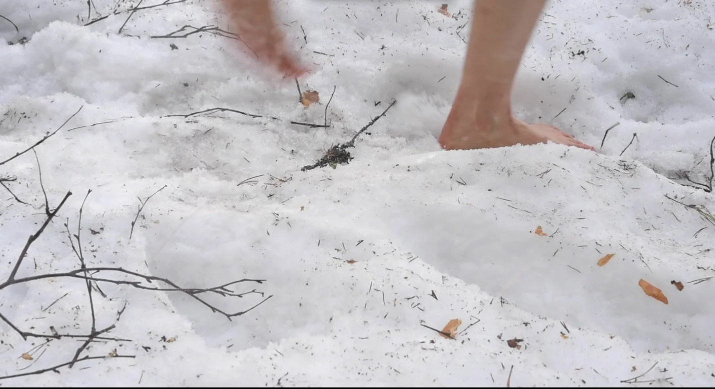 Juoksen ja kirjoitan päiväkirjaa välittömästi juoksun jälkeen: KYLLÄ. Äänitän ja kuvaan esiin nousevia kiinnostavuuksia: EHKÄ. Tiedän ja oletan etukäteen: EI.video, 1.00” loop, 2022